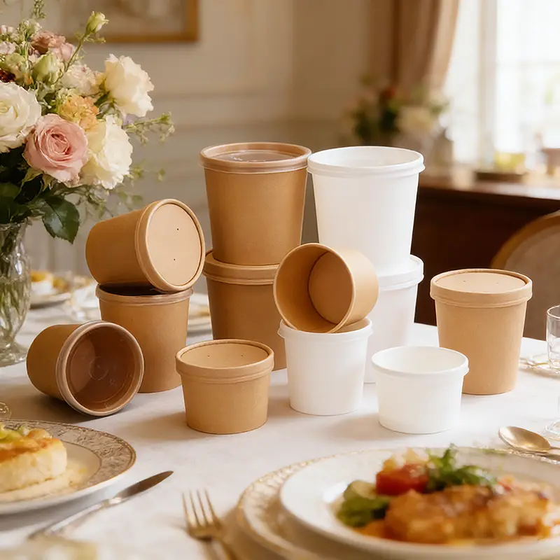 Ningbo Powerr Plastic Products Co., Ltd toimittaa laadukasta 32 unssia voimapaperikeittopaperikulhoa Kiinassa. Tällä tuotteella on vahva paineenkesto, ja se on myös vedenpitävä, öljyn- ja lämmönkestävä. Se sopii sekä lämpimiin että kylmiin ruokiin, kuivaruokiin ja ruokiin keiton kanssa. 32oz on ihanteellinen yksittäisiin annoksiin ja sitä käytetään laajalti kahviloissa, herkkukaupoissa, ruoka-autoissa, ravintoloissa ja päivittäistavarakaupoissa. Saatavana luonnonruskeana ja puhtaan valkoisena, kulhot tukevat mukautettua logo-, kuvio- ja tekstitulostusta. Asiakkaat voivat valita paperi- tai muovikannet todellisten tarpeiden mukaan.